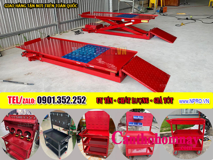 Bàn nâng xe máy cơ điện là thiết bị không thể thiếu trong các gara, tiệm sửa xe, trung tâm rửa xe chuyên nghiệp. Với cơ chế nâng hạ bằng điện kết hợp thủy lực, sản phẩm giúp thợ thao tác nhanh, tiết kiệm sức và đảm bảo an toàn tuyệt đối khi làm việc.