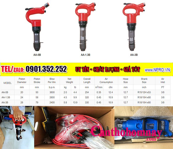 - Tiêu thụ không khí: 1.4 m 3 / phút