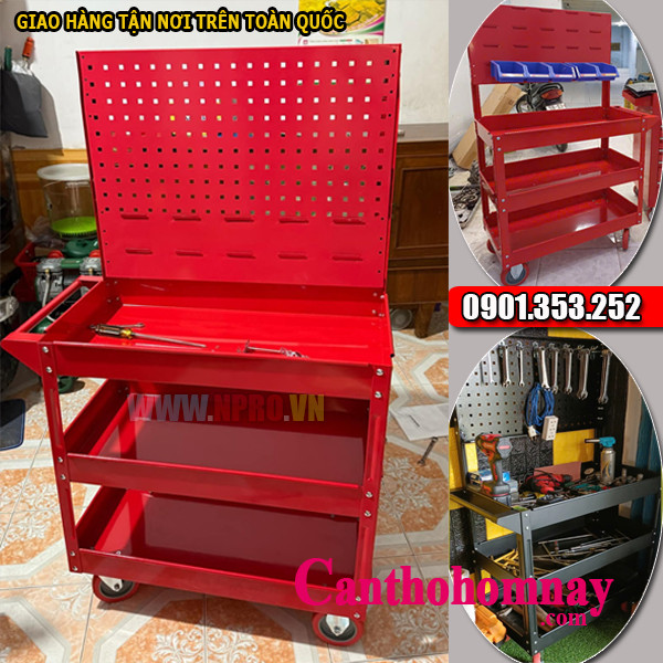 • 3 tầng chứa đồ rộng rãi: Giúp bố trí dụng cụ, chi tiết máy, ốc vít, linh kiện cơ khí gọn gàng, dễ lấy.