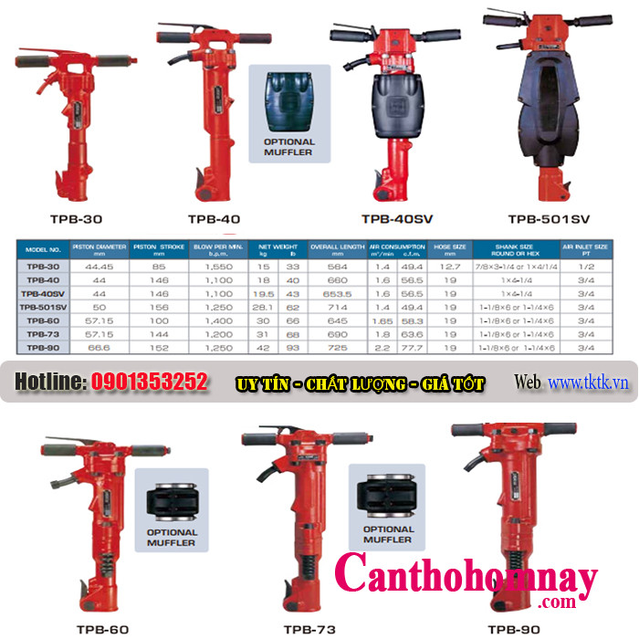 Toku là thương hiệu nổi tiếng của Nhật Bản trong ngành thiết bị công trình khí nén. Các dòng máy đục bê tông Toku (TPB Series) được đánh giá cao nhờ: