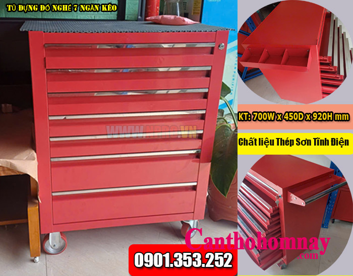 Tủ đựng đồ nghề 7 ngăn sự lựa chọn hoàn hảo cho các tiệm sửa xe, gara ô tô – xe máy, xưởng cơ khí, nhà máy bảo trì thiết bị. Với thiết kế chắc chắn, chia ngăn khoa học giúp người thợ dễ dàng sắp xếp và bảo quản dụng cụ.