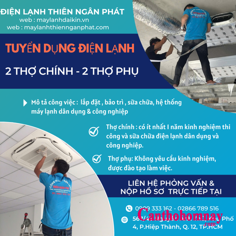 CẦN TUYỂN THỢ ĐIỆN LẠNH - THỢ PHỤ
